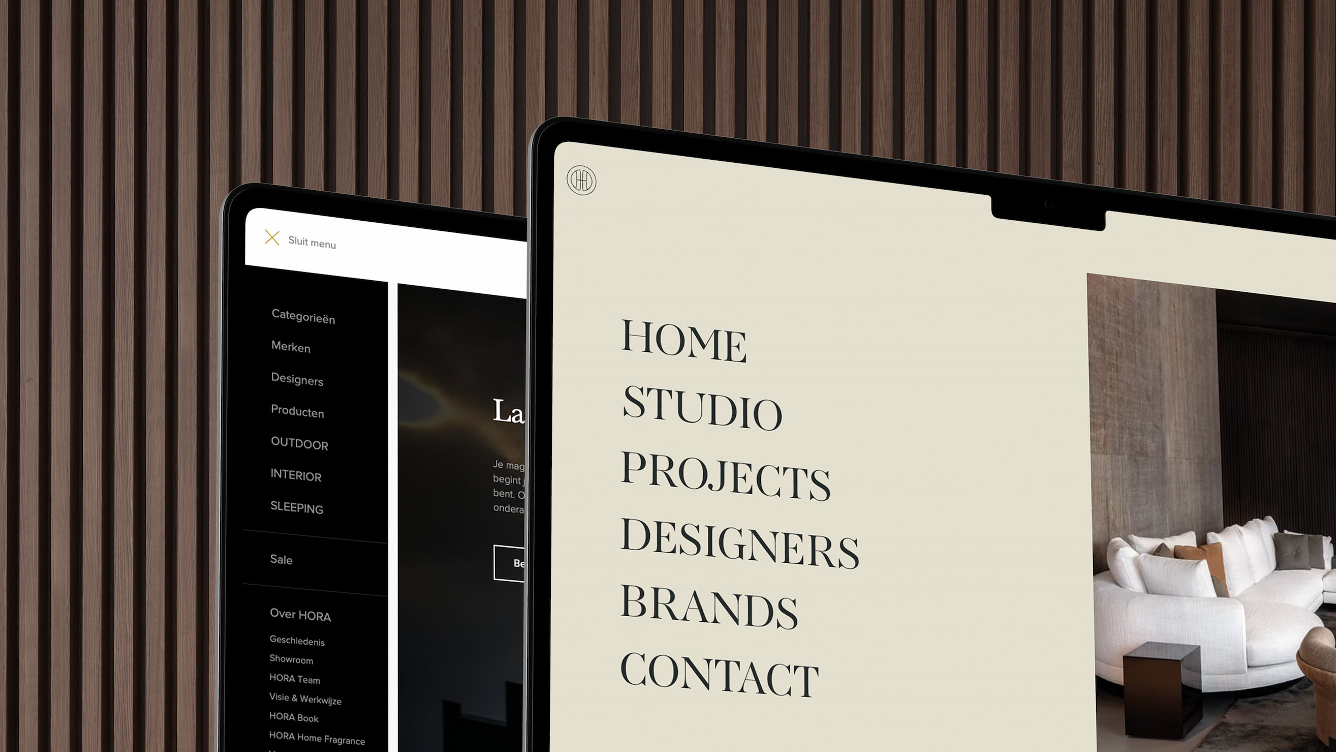 HORA is not your average furniture store. With a 4,200 m² showroom and a handpicked selection of the world’s finest brands, they have evolved into the go-to for people who want to live their love for design. More than a destination for exclusive furniture, HORA offers a lifestyle. Their designers create dream interiors, complete with 3D renderings that bring conceptual living spaces to life. To reflect this evolution, HORA needed a brand identity and website that would capture their true role as creators of high-end living experiences.
