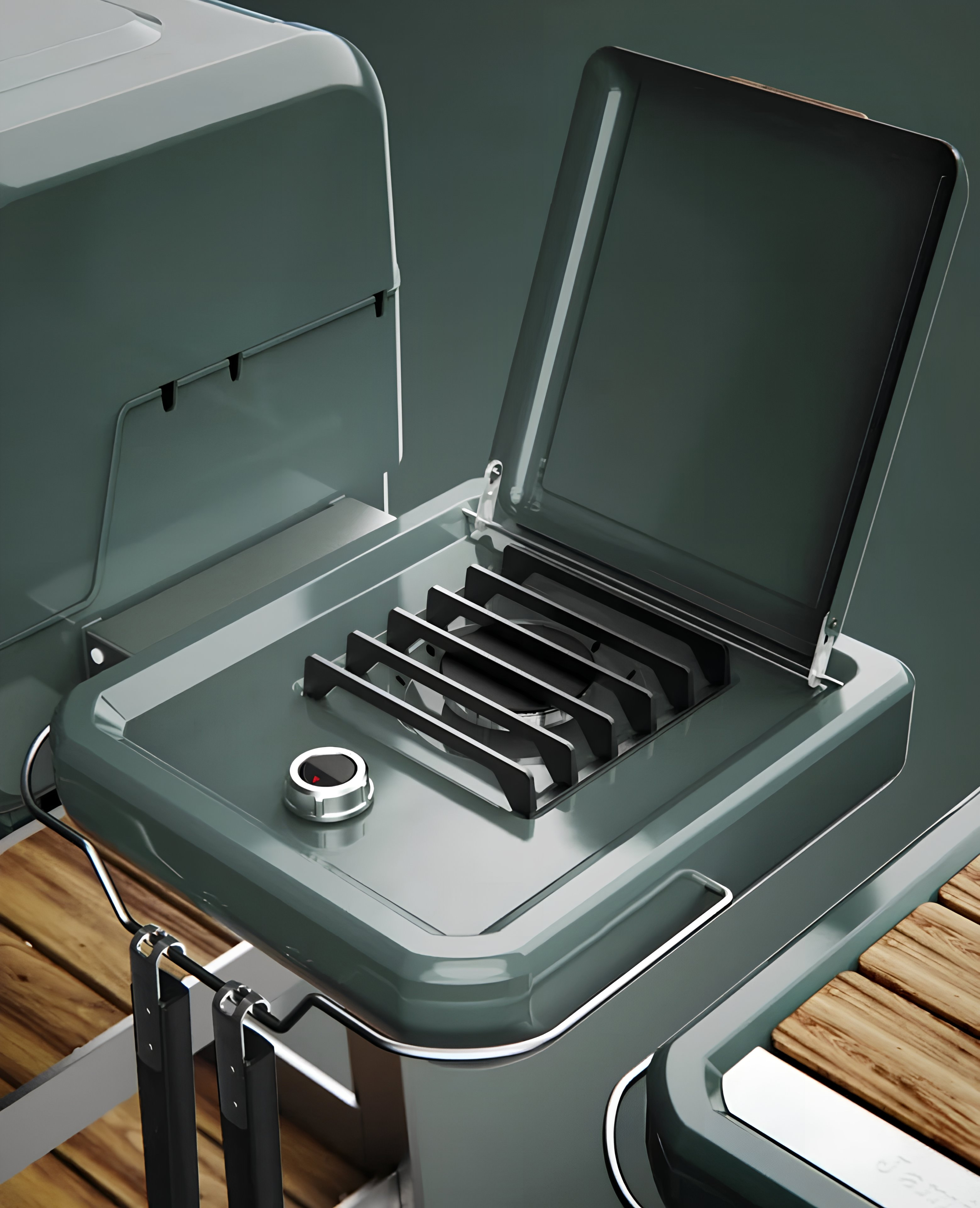 We designed a gas grill that captures the spirit of classic British craftsmanship - sturdy and practical, made from no-nonsense materials like cast steel, aluminium, and rhino wood. The grill’s robust design even evokes the rear end of a vintage Land Rover. Together with Merison, we developed the concept all the way to a production-ready model in SolidWorks.